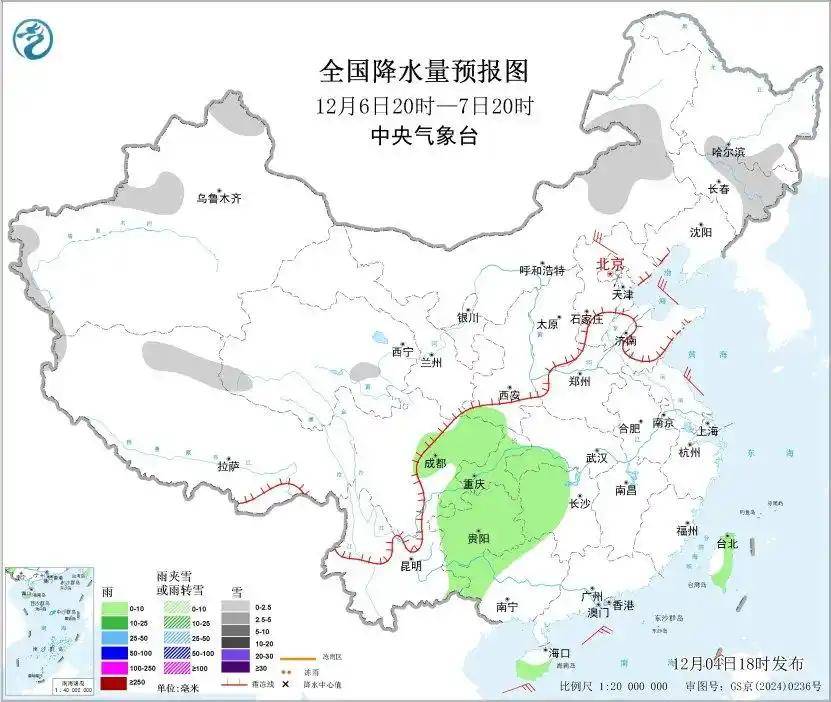图2 全国降水量预报图(12月5日20时-6日20时)