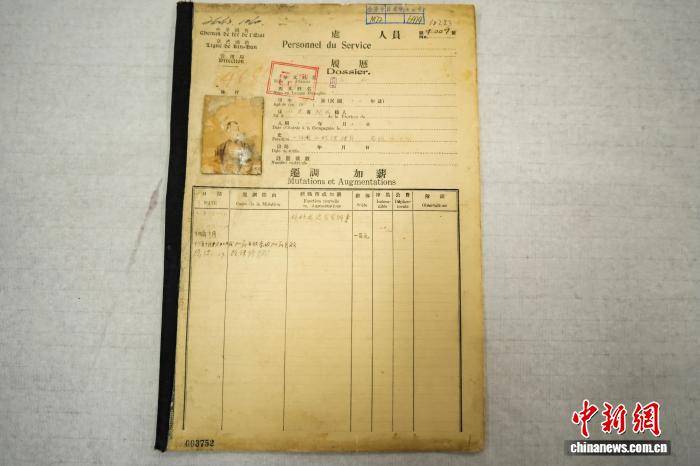 12月4日,河南省档案馆展示的吴石将军在京汉铁路管理局的履历表(部分)。中新社记者 范晓恒 摄