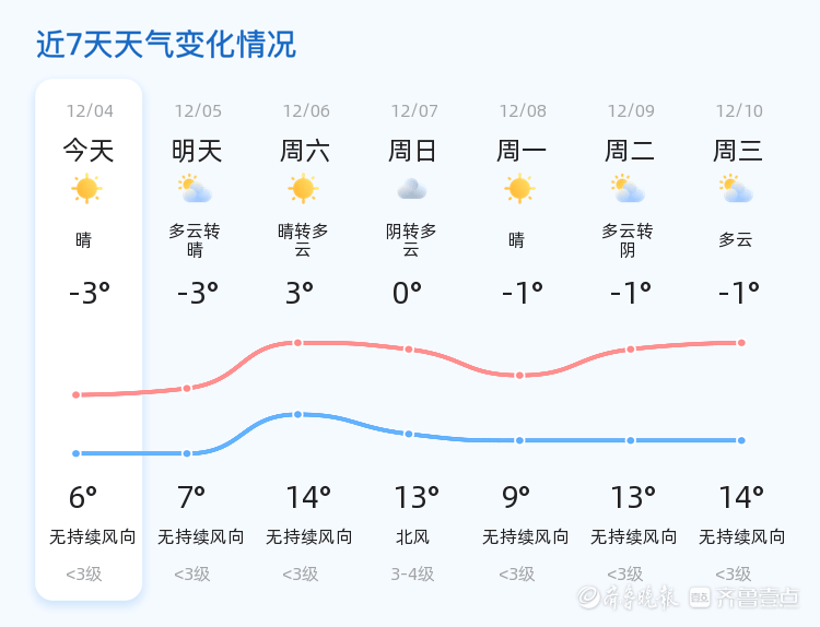 预计未来三天,潍坊市天气趋势总体平稳。周六和周日以晴转多云和阴转多云为主,气温将逐渐回升,最高气温可达14℃,最低气温维持在-3℃。周日将有北风3-4级,市民需注意防范大风天气带来的影响。
