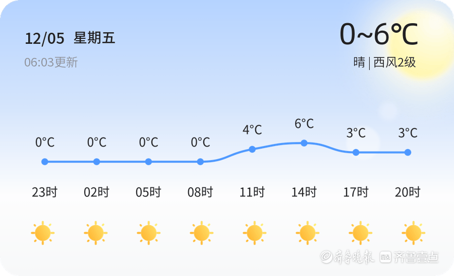 今日是2025年12月5日,星期五,农历十月十六。烟台市天气晴朗,温度介于0℃至6℃之间,西风2级,空气湿度为53%。PM2.5指数为24,属于良好空气质量,适合户外活动。市民出行时请注意保暖,尤其是早晚温差较大,建议添衣防寒。