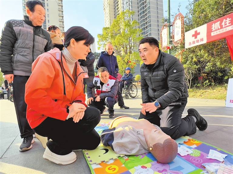 郑州市红十字法律工作志愿服务队队员给市民讲授心肺复苏知识。本报资料图片