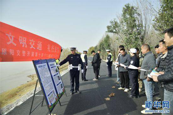 12月1日,新乡市原阳县公安局交警大队在黄河岸边开展交通安全案例宣讲活动。胡靖雨 摄