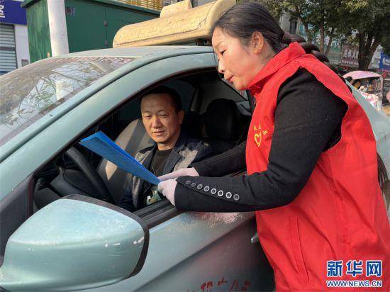 12月1日,在南阳市唐河县新春路出租车候客点,交通志愿者向出租车司机宣传讲解交通安全知识。张旭 摄