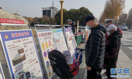 12月1日,开封市尉氏县“全国交通安全日”活动现场,交警为群众讲解交通安全知识。孙世杰 摄
