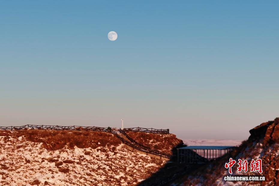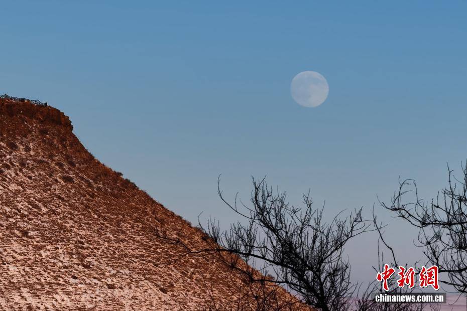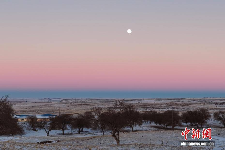 12月4日,内蒙古自治区锡林郭勒盟锡林浩特市,平顶山火山群迎来了与本年度最后一轮超级月亮的浪漫邂逅。日光渐隐,月亮缓缓攀升,最终悬于火山台地之巅。蓝粉色维纳斯带萦绕月侧,为这片亿万年火山喷发形成的多阶熔岩台地,镀上梦幻光晕。山壑间的老榆树静静伫立,光影流转中,冷峻的火山肌理与温柔月色相拥。图为平顶山巅的月亮。梁初一 摄