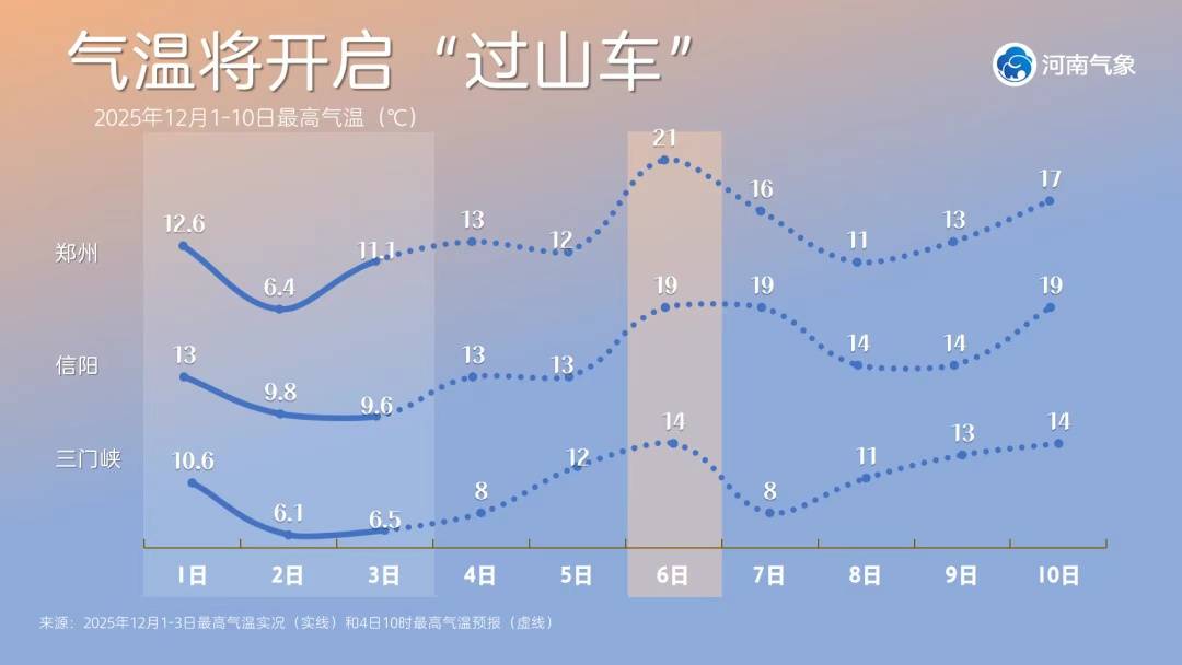 先说大家最关心的升温。这轮回暖的高点就在本周日(7日),郑州的最高气温预报直接是21℃。这个数字在12月出现,确实会让人感觉像是回到了10月。但是,白天的暖意迷惑性很强,太阳一落山,气温掉得很快。