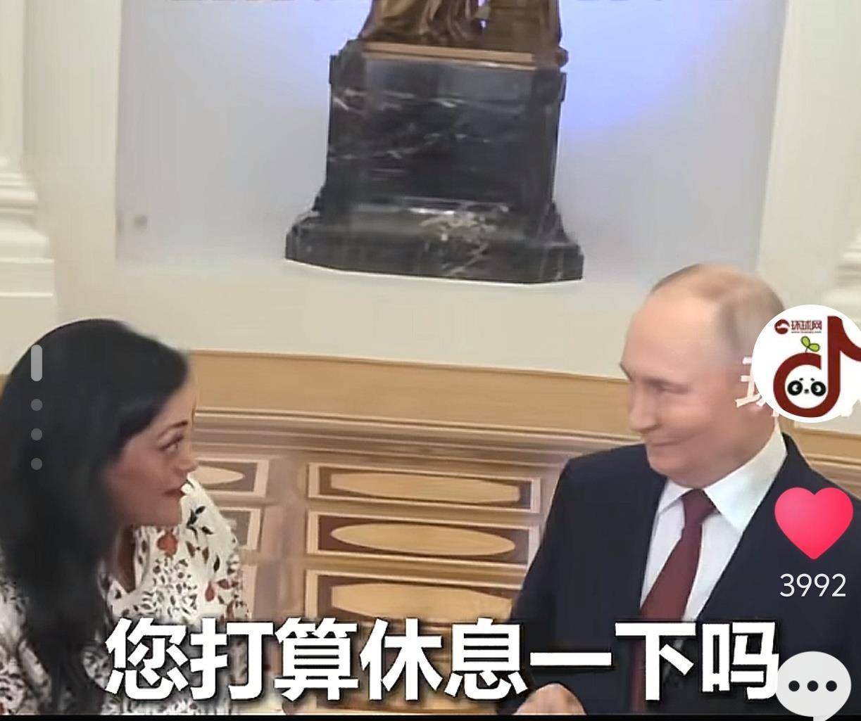 另据参考消息、环球网发布的现场视频资料,一名女记者对普京提问说:“我们已经‘跟踪’您3天了,我们看到您工作非常努力,和我们总理(莫迪)一样努力,您打算休息一下吗?”对此,普京打趣地说道:“究竟是谁在情报部门工作过,是你还是我?你已经跟踪我3天了。”