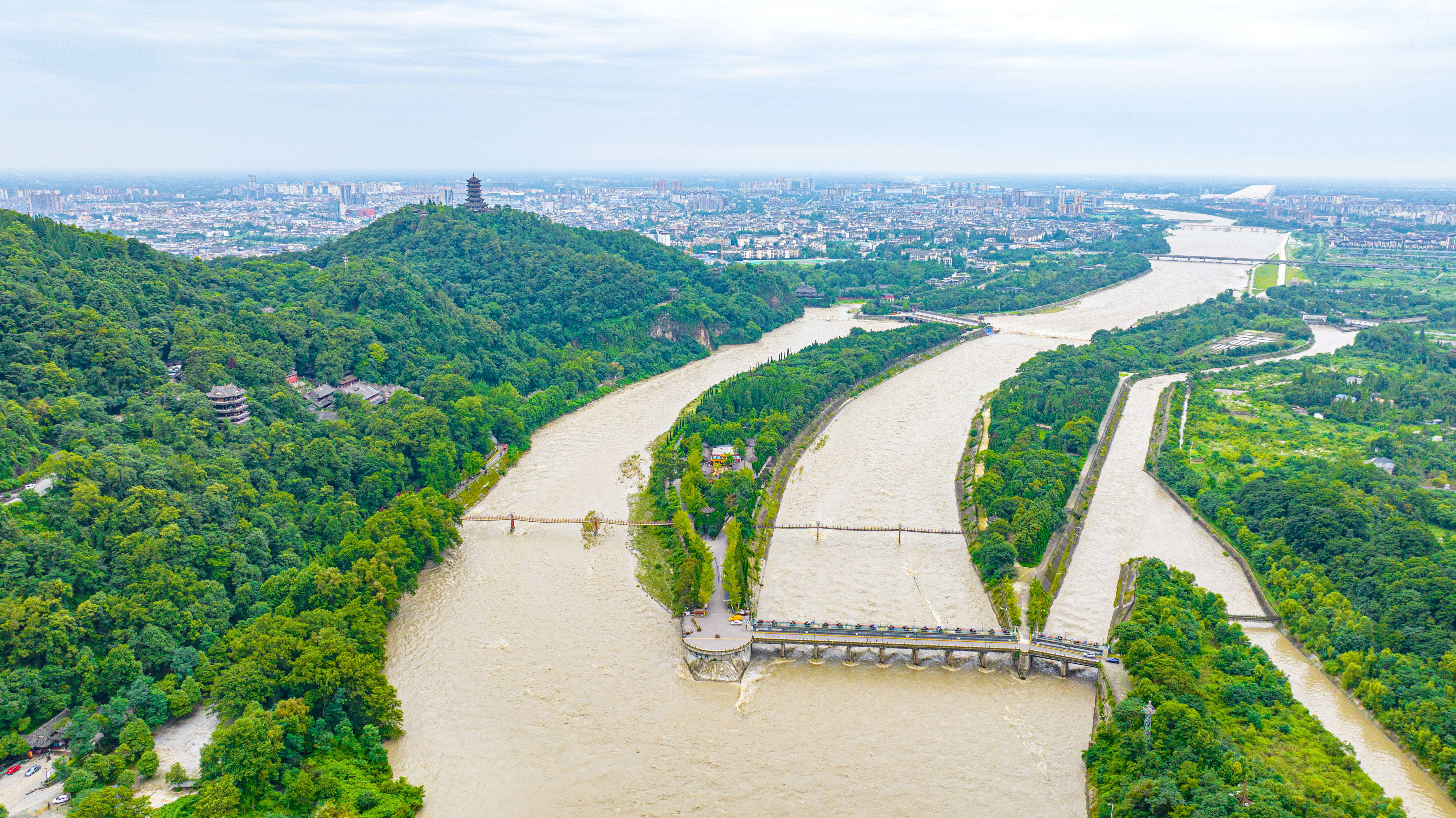 2025年7月拍摄的都江堰水利工程(无人机照片)。新华社发(何勃 摄)