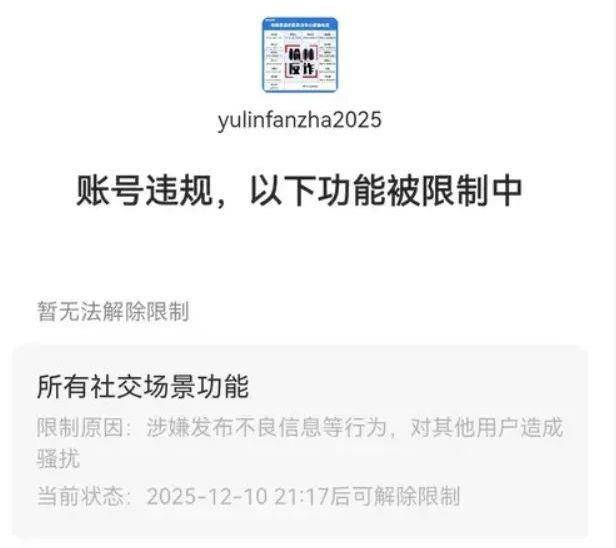 文章称,一个专门用于向群众社群、小区群推送反诈宣传文章的微信账号,在发送纯公益反诈内容后,被系统判定违规封禁,至今未获得明确解释与沟通渠道。
