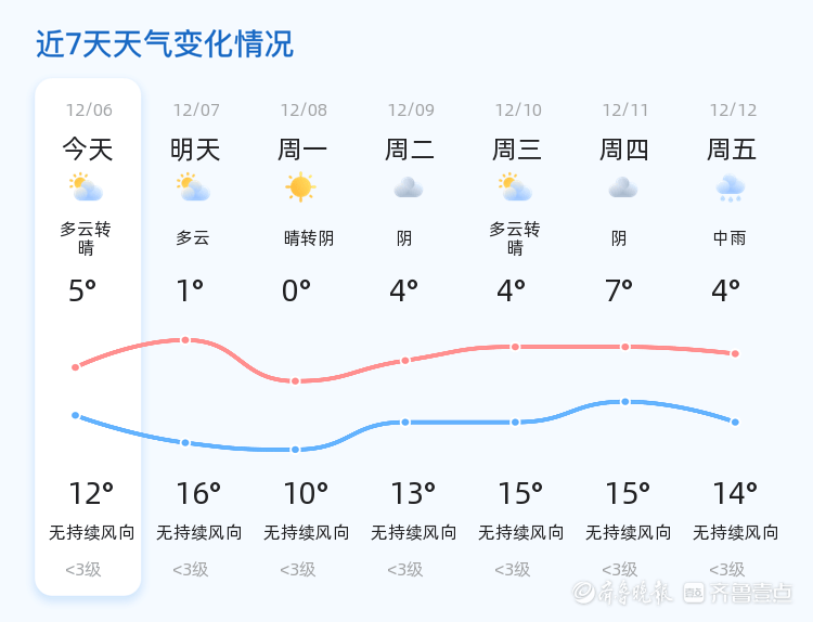 今日是12月6日,星期六,农历十月十七。临沂市今日天气多云转晴,气温在5℃至12℃之间。全市各区天气状况良好,风力较小,空气湿度为66%,空气质量良好。市民朋友们可以放心进行户外活动,享受冬日的阳光。