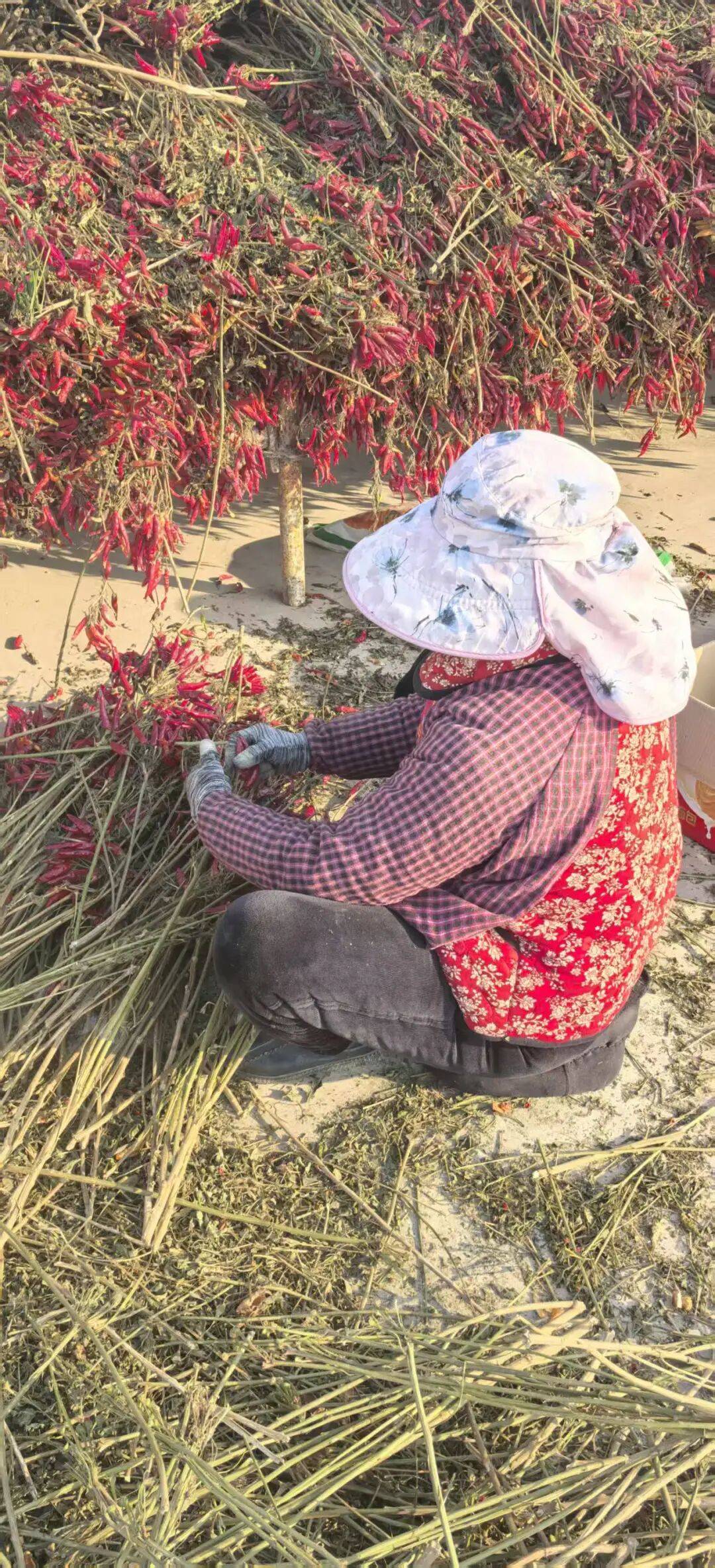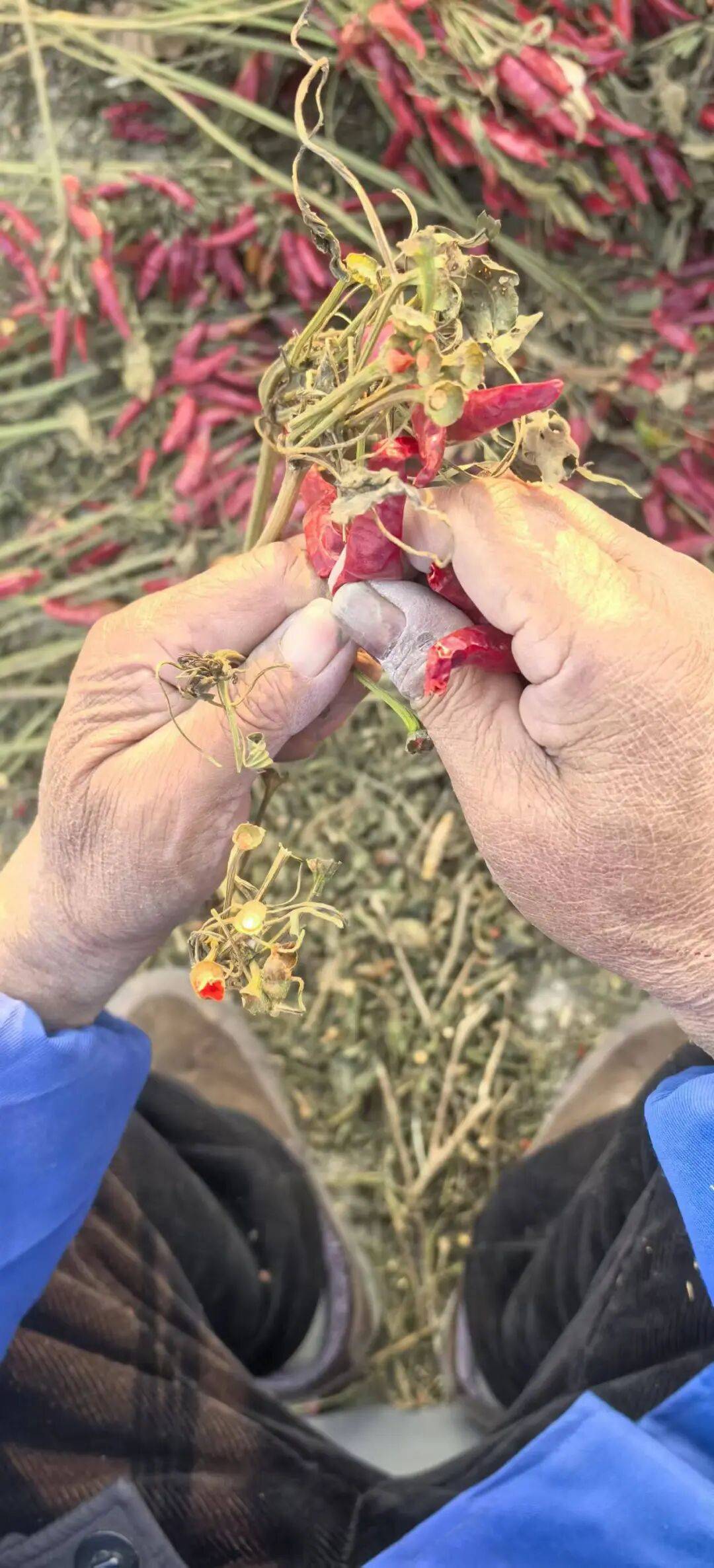 走近一看,原来是村里的街坊邻居在摘辣椒。