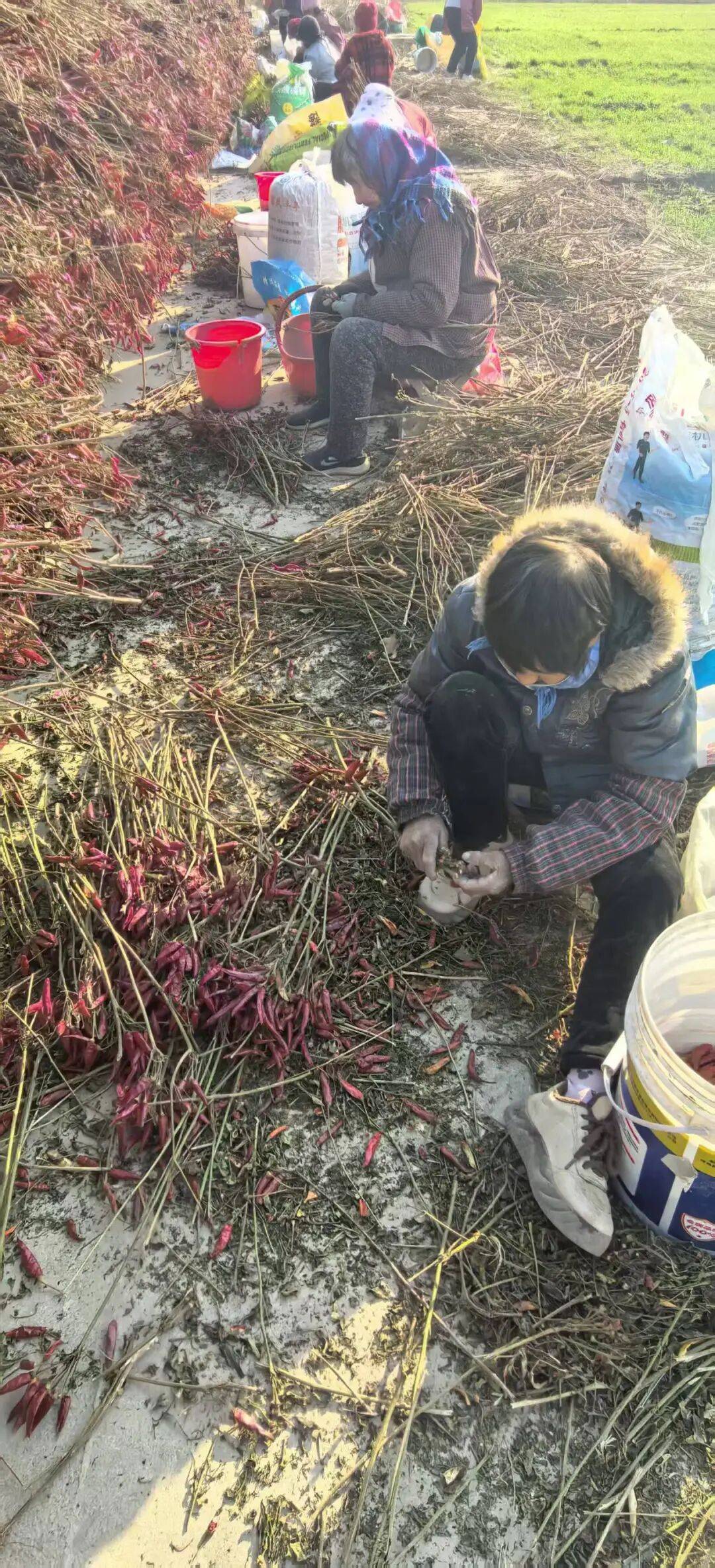 十二月的河南,风越来越冷,在空旷田野上,邻里们忙的热火朝天,一个一个低着头,把注意力都集中在双手上,追赶着时间,尽量多地摘一斤辣椒,就能多收入块儿八毛钱。