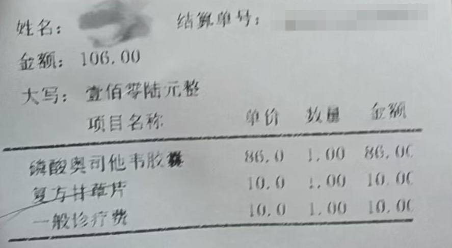 ▲在卫生院购买的磷酸奥司他韦 受访者提供