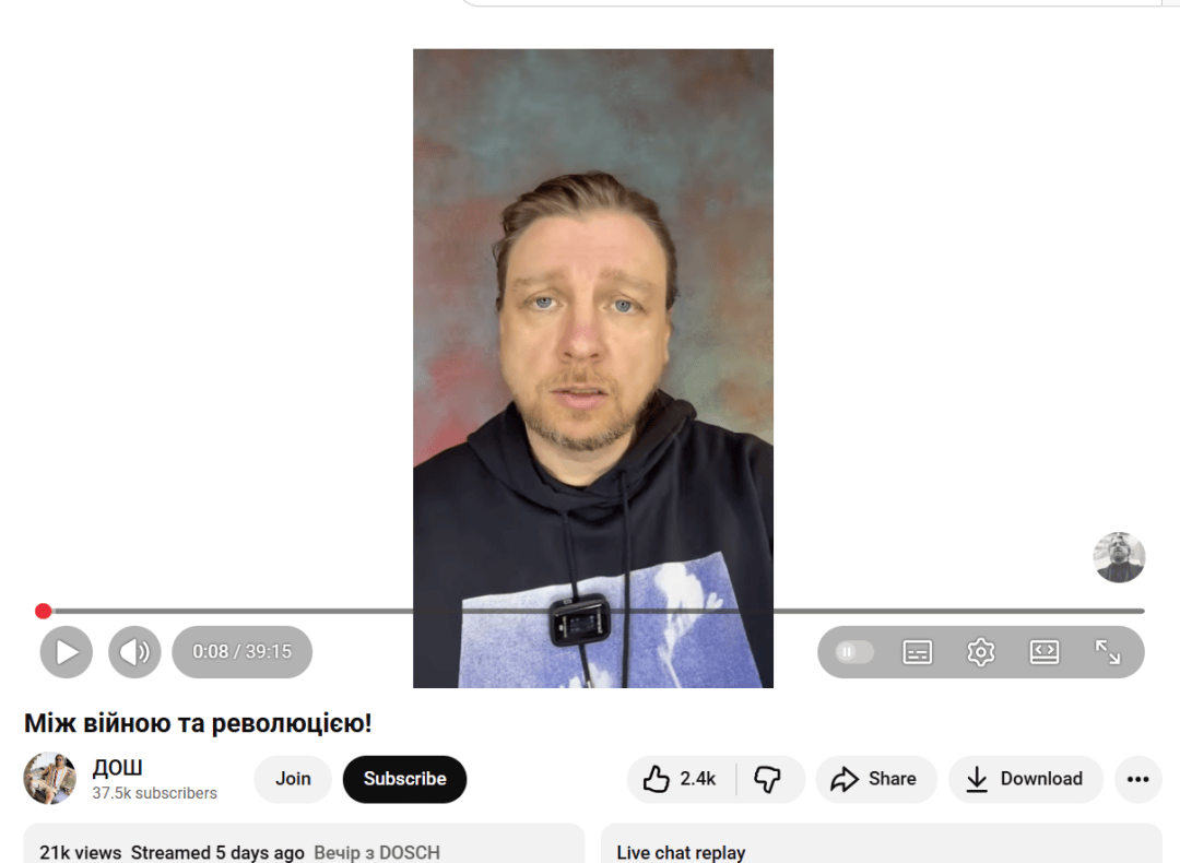 彼得罗夫近日在个人YouTube频道发布的直播内容截图。