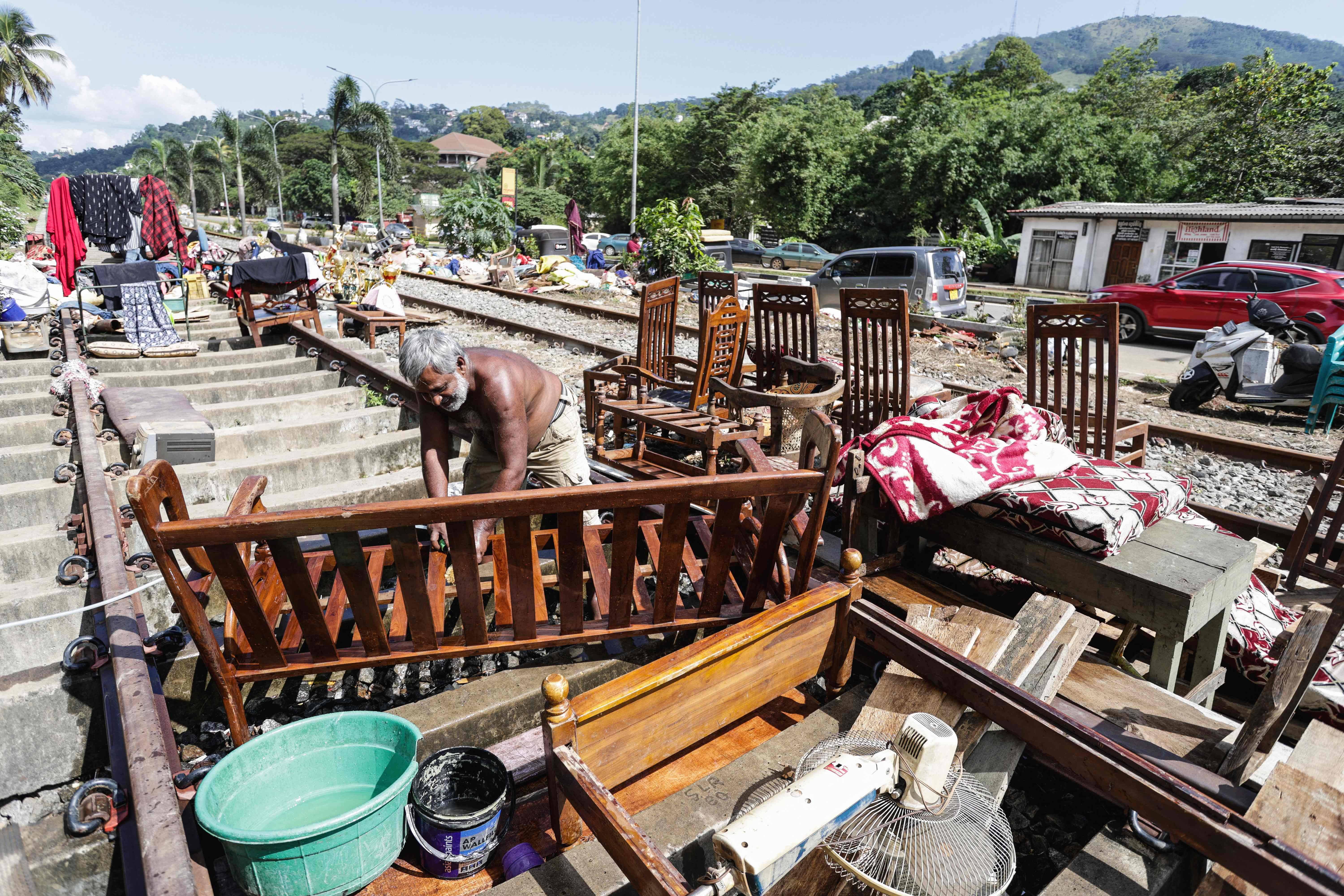 12月6日,在斯里兰卡康提,一名男子晾晒个人物品。 新华社/法新