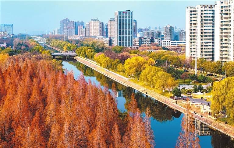 12月5日,冬日阳光洒满莲城许昌。清潩河穿城而过,河水碧波粼粼。近年来,许昌以宜居宜业为目标,持续完善城市功能、提升精细化管理水平,让河畅、岸绿、景美的生态画卷在城市间徐徐铺展,彰显莲城的生态魅力与生活温度。(吕超峰 任江鹏 摄)