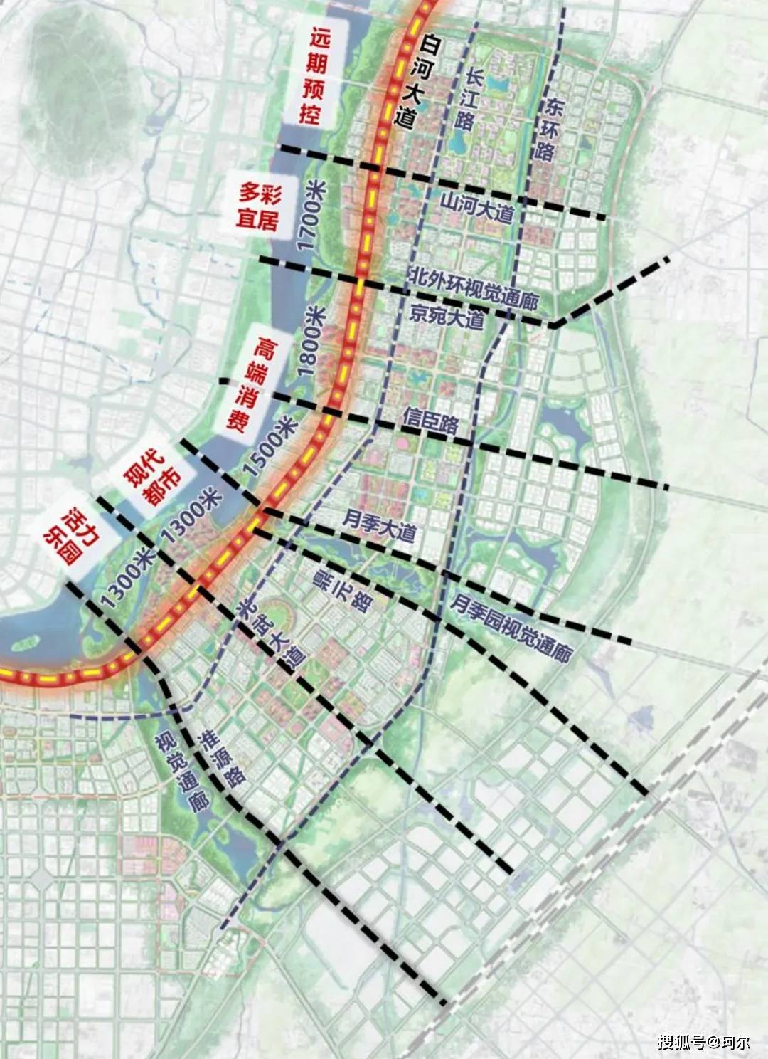 将白河左岸打造成新城区的重要展示窗口。以白河大道为白河左岸核心景观轴线,沿岸形成活力乐园、现代都市、高端消费及多彩宜居四大功能区。