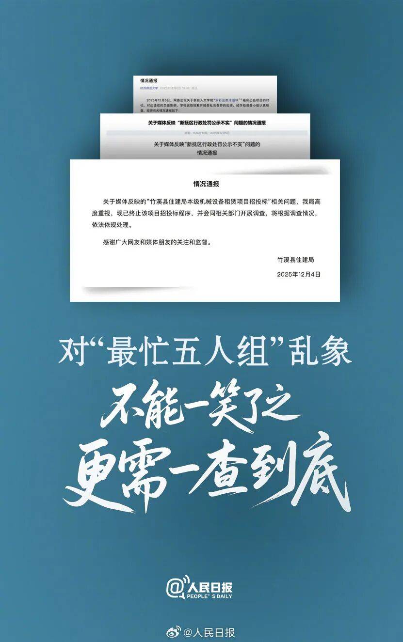 人民微评:对“最忙五人组”不能一笑了之,更需一查到底