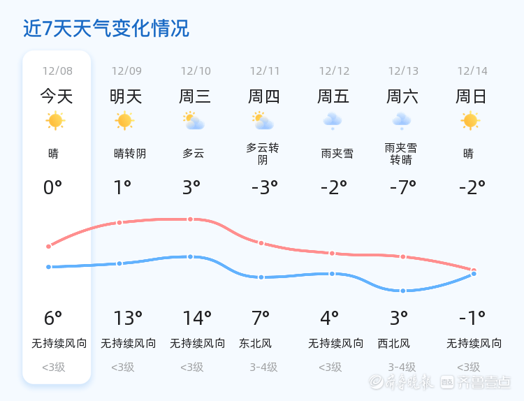 未来三天,潍坊市天气趋势总体平稳。气温将呈现上升趋势,最高气温可达14℃,最低气温维持在0℃左右。预计12月11日有雨夹雪天气,市民需提前做好防范措施,注意出行安全。