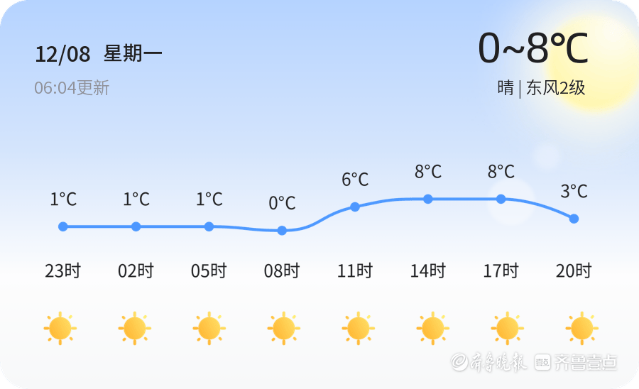今日是12月8日,星期一,农历十月十九。泰安市今日天气晴朗,气温介于0℃至8℃之间,东风2级,空气湿度为31%。当前空气质量良好(PM2.5值为56),适合户外活动。市民出行时请注意保暖,尤其是早晨和夜间气温较低,建议增添衣物以防止感冒。此外,由于风力较小,建议市民在户外活动时注意防范干燥带来的不适。