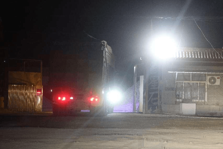 ▲11月27日晚,一辆货车满载圣泉生态公司所开采的矿石,驶进平邑县金星石材公司。 新京报记者 李英强 摄