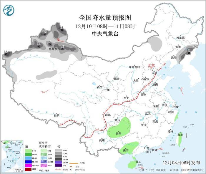 全国降水量预报图(12月10日08时-11日08时) 图片来源:中央气象台网站