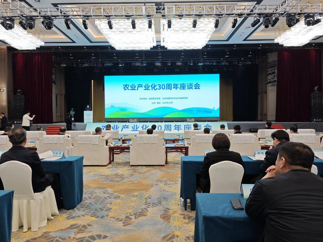 今年是《人民日报》社论《论农业产业化》发表30周年。12月6日,农业产业化30周年座谈会在潍坊诸城召开,深入学习贯彻党的二十届四中全会精神,回顾三十载农业产业化演进历程,探讨新征程农业现代化发展良策,为拓展创新“三个模式”、更高水平打造乡村振兴齐鲁样板先行区汇智赋能。副省长陈平,中国农科院乡村振兴学院院长、中国农科院原党组书记张合成,中国农垦经贸流通协会理事长、农业农村部原总畜牧师张天佐,学习时报社原社长许宝健,省政府副秘书长薛超文,市委书记刘运,市委副书记郭飞出席;省直有关部门负责同志,国内相关专家学者,市领导吕珊珊、刘艳芳参加。