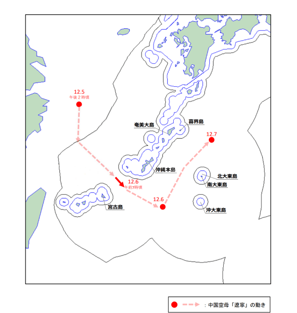【文/观察者网专栏作者 王世纯】根据日本防卫省发布消息,12月7号,中国海军辽宁舰航母战斗群沿琉球群岛以东海域北上,抵达喜界岛以东约190公里处。相较于前一天位置,辽宁舰北上约600公里。这是辽宁舰近年来首次通过宫古海峡以后北上航行。