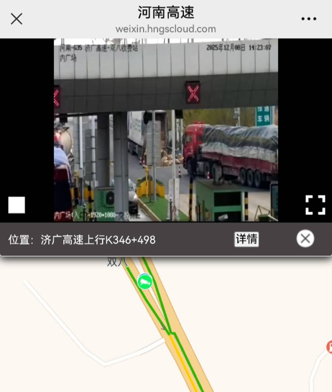 齐鲁晚报·齐鲁壹点记者通过“河南高速云视频”小程序查询该路段实时监控,发现G35济广高速双八收费站站内广场处的画面与网传视频相符,可见涉事货车及散落的货物。