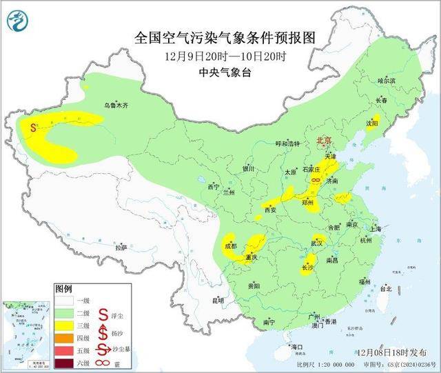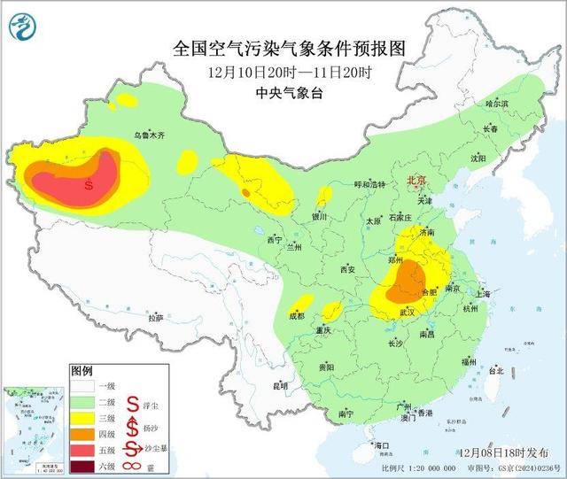 8日夜间至10日,华北南部、黄淮西部等地大气扩散条件逐步转差,有轻度霾,局地中度霾。11日起,受冷空气和降水天气共同影响,上述地区的大气扩散和湿清除条件逐渐转好。此外,8日夜间至9日上午,新疆天山北坡部分地区有大雾天气。