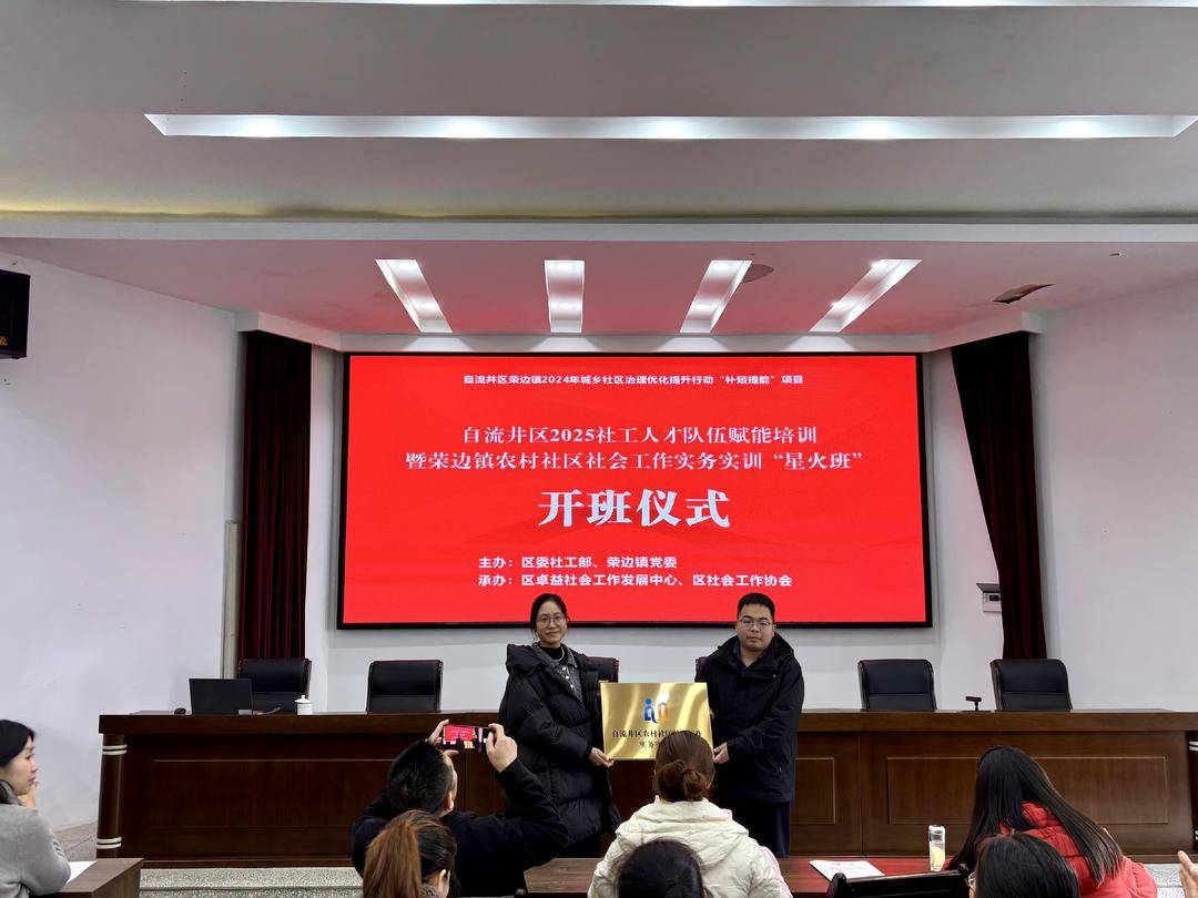 开班仪式上,自流井区委社会工作部负责人为“自流井区农村社区社会工作实务实训基地”授牌,基地的成立标志着自流井区农村社工人才培养步入标准化、实战化阶段。