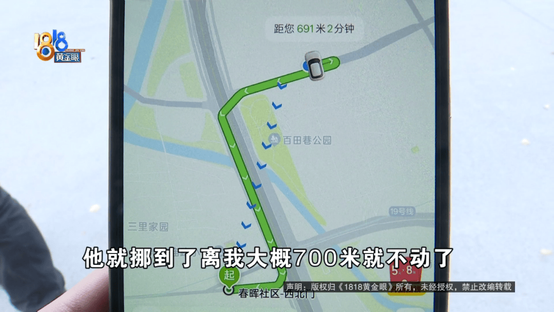 陈先生提供了截图,画面中的车辆距离起点691米,时间还有2分钟,左等右等不见车来,陈先生觉得不能再等了。