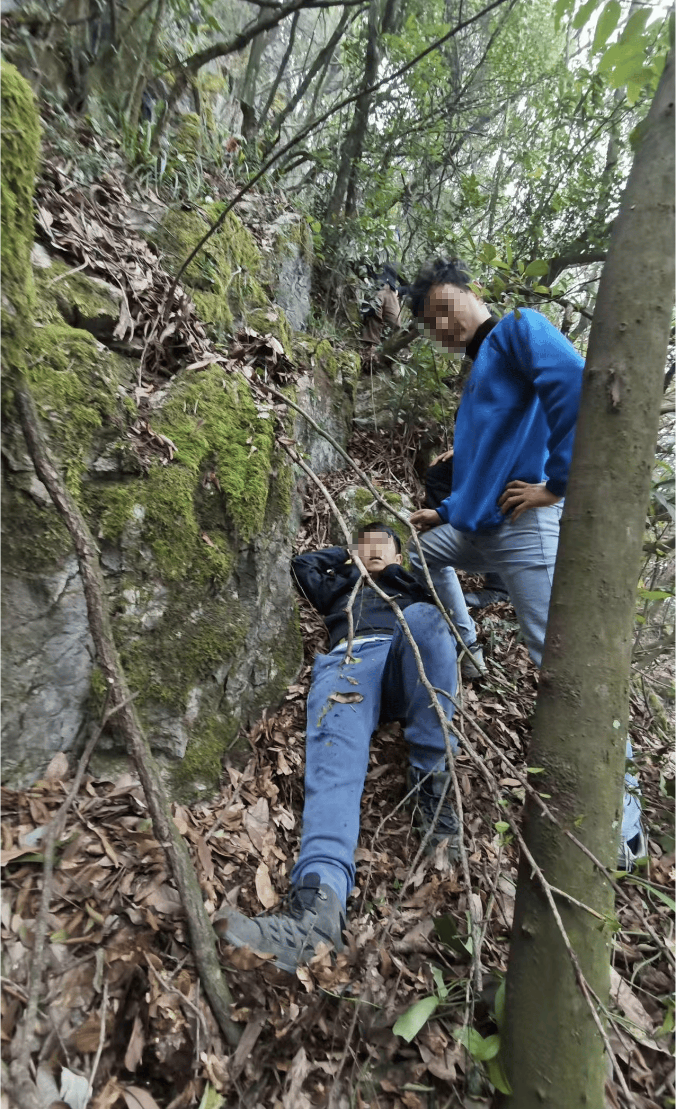 “他掉下去的时候,是下午一点半左右。”于江说,“长江哥”坠崖后,她和队友高声呼喊他的名字,很快得到了回应,“听他精神状态还可以。”队友们立即下山寻找,找到人后发现他头上有一道伤口,但精神状态尚可,“还扶着他走了一段”,后来叫了朋友上山救援,但未报警。“下午一点半打的电话,救援三点半到四点钟上来的,走到当地医院是晚上十点多了。”于江说,到医院后“长江哥”头部外伤缝了5针,还诊断出脊椎有轻微骨裂。