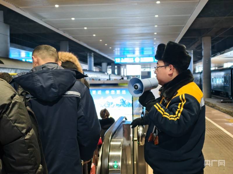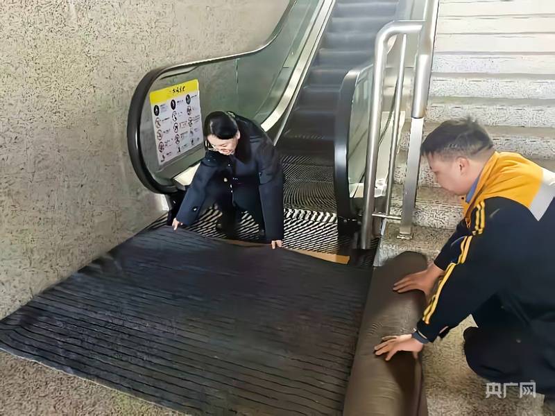 车务部门加强组织引导旅客进出站,在人流密集的台阶处铺设防滑垫,安排专人在进出站扶梯和站台上进行防滑宣传和安全卡控 (央广网发 中国铁路乌鲁木齐局集团有限公司供图)