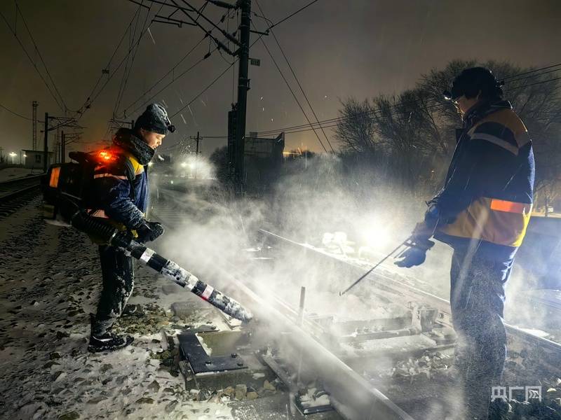 电务、供电部门及时成立道岔除雪突击队,实时盯控道岔关键位置,做到雪落即扫,确保线路设备状态良好 (央广网发 中国铁路乌鲁木齐局集团有限公司供图)