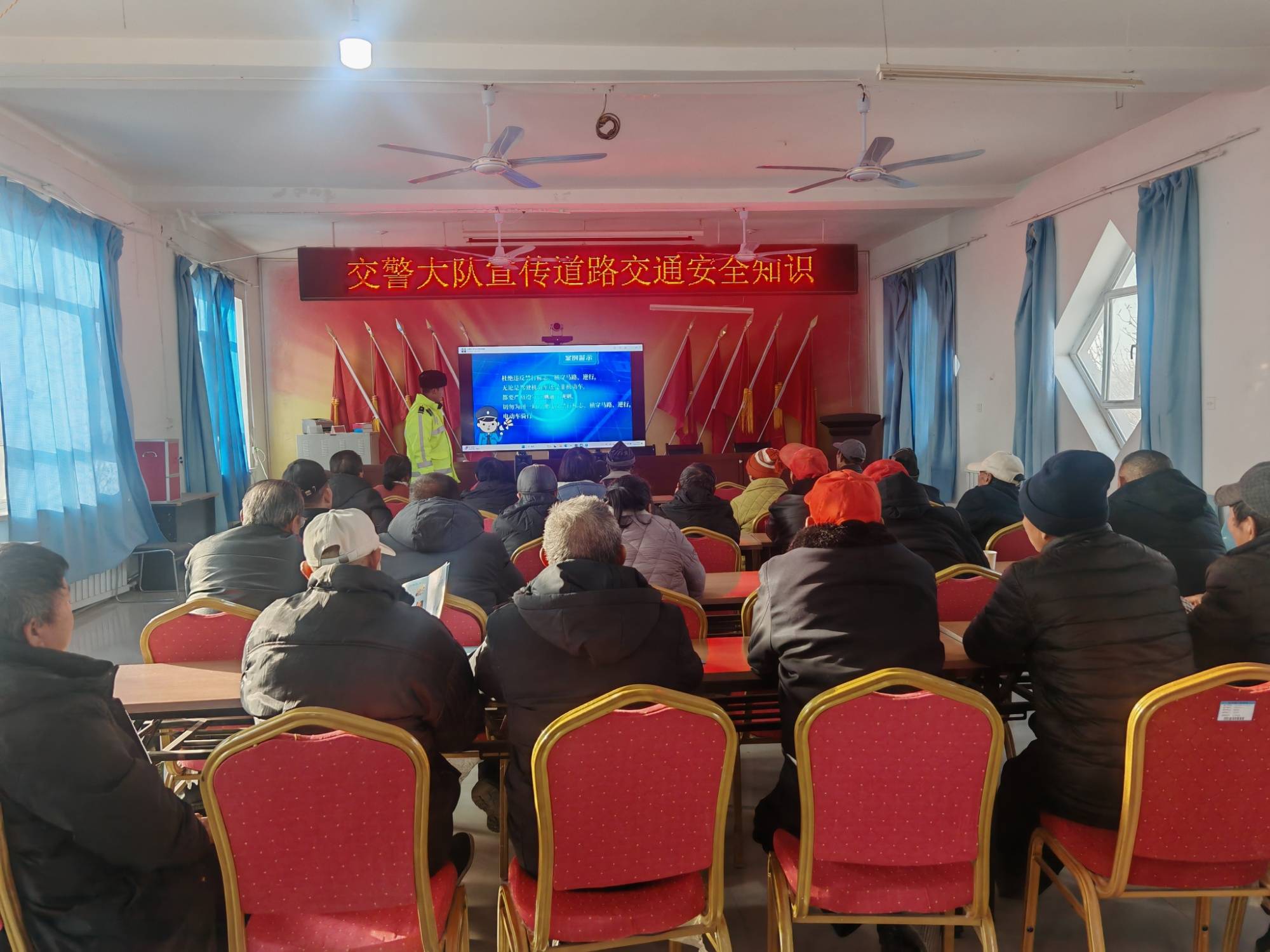 活动现场,交警大队工作人员结合农村道路弯多、路口复杂、村民出行集中等特点,聚焦电动车、电动三轮车出行高频违法行为,通过“视频警示+现场讲解+互动答疑”的形式开展宣传。在大屏幕上播放的警示教育片,精选了近年来不按规定佩戴安全头盔、闯红灯、逆向行驶、违法载人载物、超速行驶等行为引发的典型交通事故案例,详细解析了违法行为与事故后果之间的必然联系。