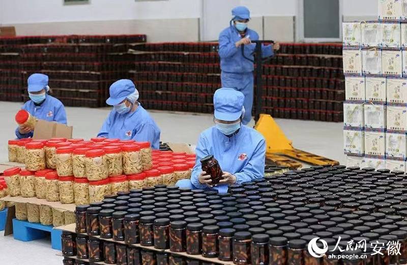 同在铜陵国家农业科技园区内,与康恒公司仅一路之隔的安徽铜雀二乔生物科技股份有限公司,其全自动生产车间里,智能化生产线也在高效运转,由铜陵白姜制成的姜干、姜粉、姜饮料等产品被打包装车,等待发往各地。