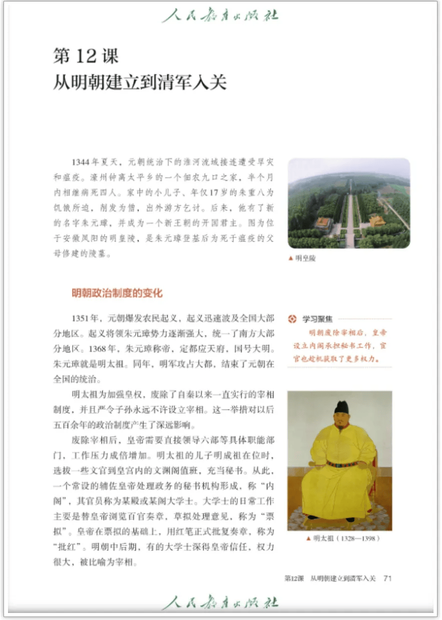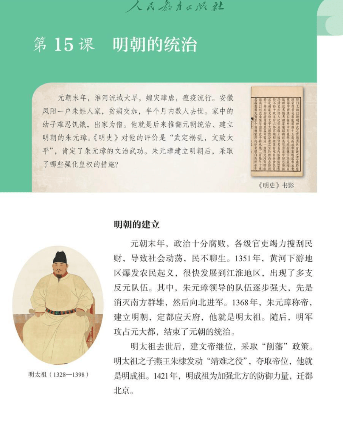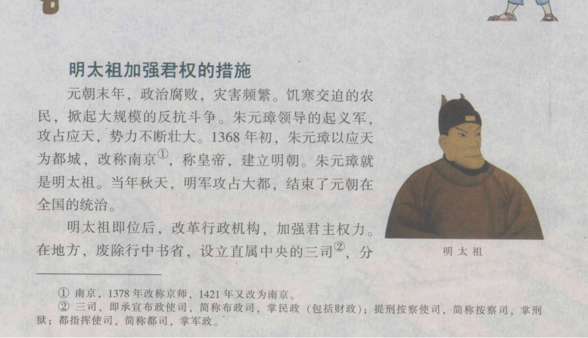 旧版历史课本中的明太祖形象 人民教育出版社教科书的扫描电子版