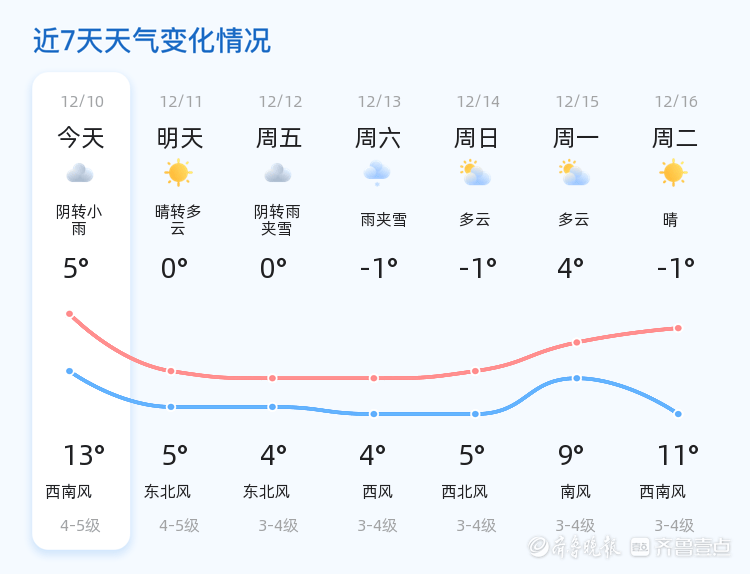 未来三天,烟台市天气多变。12月12日,阴转雨夹雪,气温0℃到4℃;12月13日,雨夹雪,气温-1℃到4℃;12月14日,多云,气温-1℃到5℃。市民需注意防范雨夹雪天气带来的道路湿滑和能见度低的问题,出行时应减速慢行,确保行车安全。