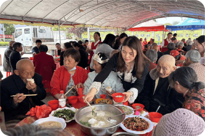 东升村的“百家宴”活动便是生动例证。该村常住人口不足400人,留守老人多达170多人。2024年中秋节前夕,支部书记李汉强在个人抖音视频号发出倡议后,得到了村民们的积极响应。