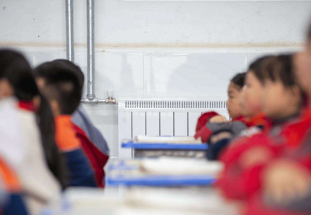 座位旁的暖气片持续散热,孩子们脱下棉衣,认真听讲——这是该校自2019年建校以来迎来的首个“暖冬”。校长王亚芬介绍:“学校共有5871平方米的教学区域,全部采用‘空气能+散热片’模式供暖,目前运行正常。开学至今,学生感冒请假率大幅下降,课堂专注度明显提高。”