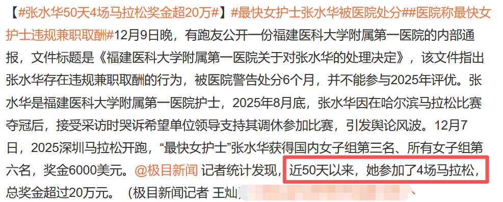 既是护士,又是马拉松赛场上的常客,张水华咋就被医院处分了呢?