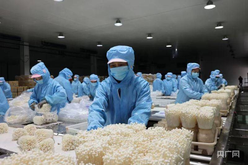 在安徽康恒生物科技有限公司的智能化生产车间,工人们正有条不紊地进行金针菇的采收、分拣和包装作业。这家于2023年7月正式投产的企业,如今已实现日产金针菇70吨,产品不仅覆盖全国市场,更远销至美国、欧洲、东南亚等地区。