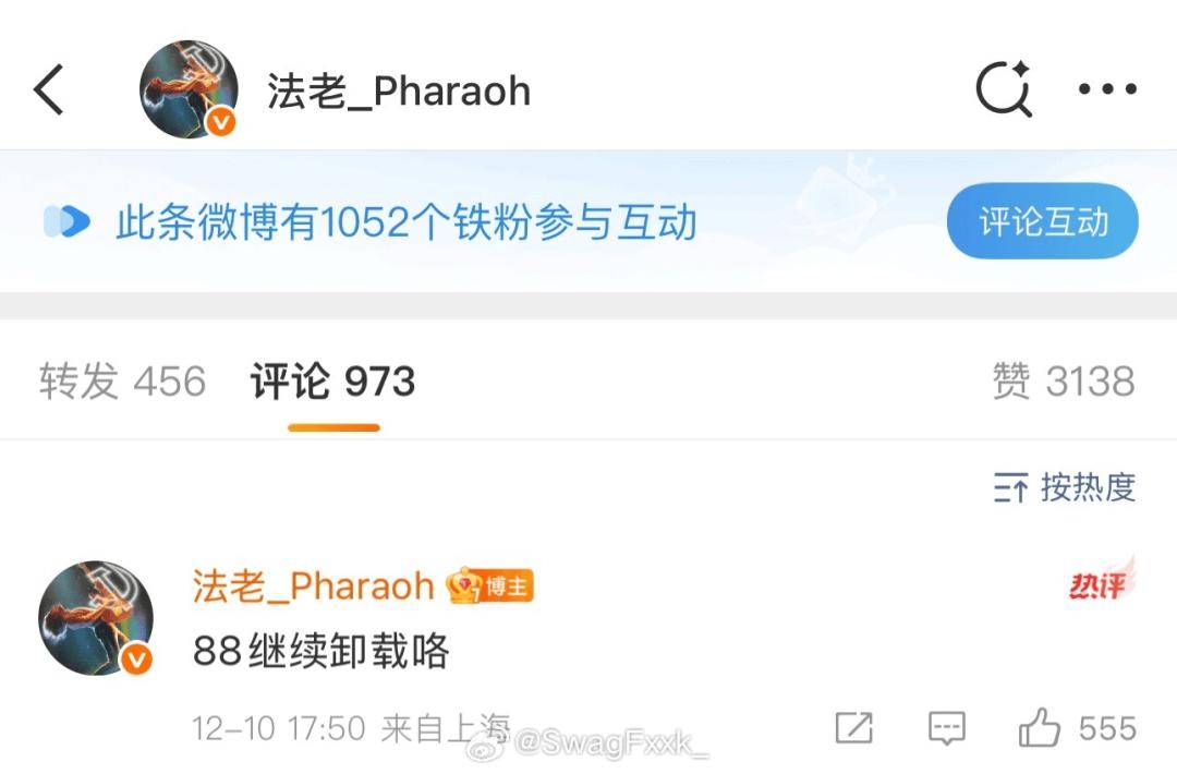 而在回应完后,法老再次宣布卸载了微博:“88继续卸载咯”