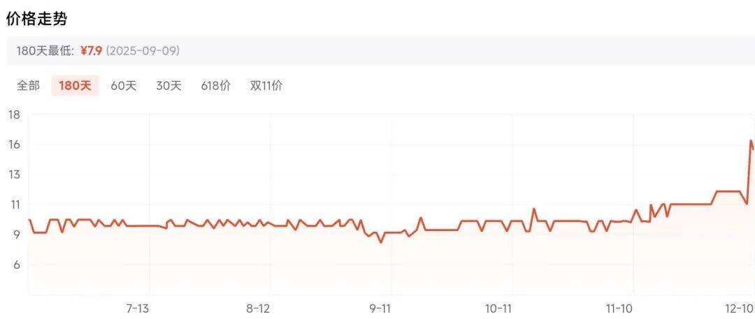 某比价平台上,《每日经济新闻》记者注意到,原本在过去180天内价格基本稳定在7~8元的水银体温计,昨天突然价格翻倍。不仅如此,跳转到这些价格翻倍的水银体温计购买页面,也已显示无货,商品则被平台打上“周销量上涨10+倍”的标签。