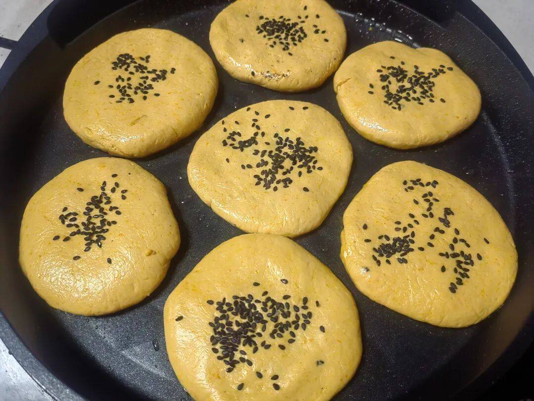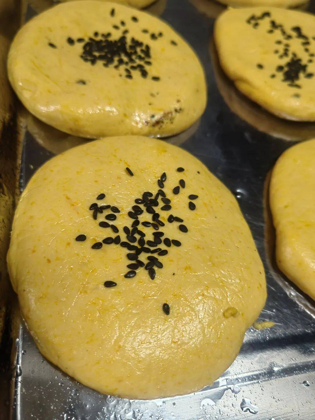 趁着热气,赶紧团一团包馅儿,撒上黑芝麻装饰。