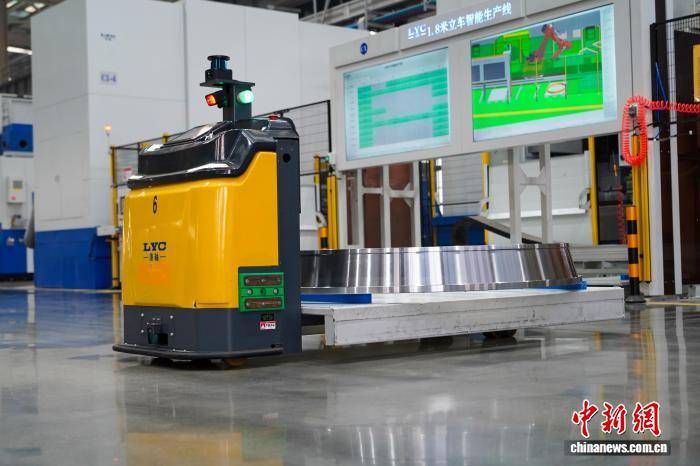 12月10日,河南洛阳轴承集团股份有限公司(简称“洛轴”)智能工厂生产忙。轴承,被称为机器运转的“关节”。近年来,洛轴逐步建成国内领先的航空航天、风力发电、轨道交通、新能源汽车等轴承试验平台,产品系列涵盖九大类型、3万余种,并自主孵化、开发了一批拥有自主知识产权的轴承应用软件,以数智赋能,进一步提升企业核心竞争力。图为智能工厂的自动导向运输车(AGV)在转运轴承产品。中新社记者 李超庆 摄