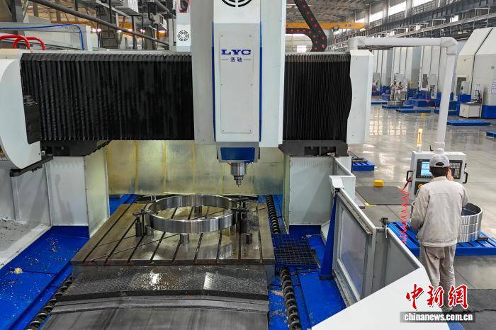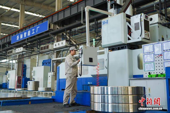 12月10日,河南洛阳轴承集团股份有限公司(简称“洛轴”)智能工厂生产忙。轴承,被称为机器运转的“关节”。近年来,洛轴逐步建成国内领先的航空航天、风力发电、轨道交通、新能源汽车等轴承试验平台,产品系列涵盖九大类型、3万余种,并自主孵化、开发了一批拥有自主知识产权的轴承应用软件,以数智赋能,进一步提升企业核心竞争力。图为工人在操作设备。中新社发 夏青华 摄