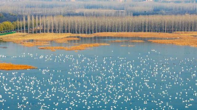 三门峡黄河湿地灵宝段,大规模越冬天鹅齐聚,成为治愈人心的风景。