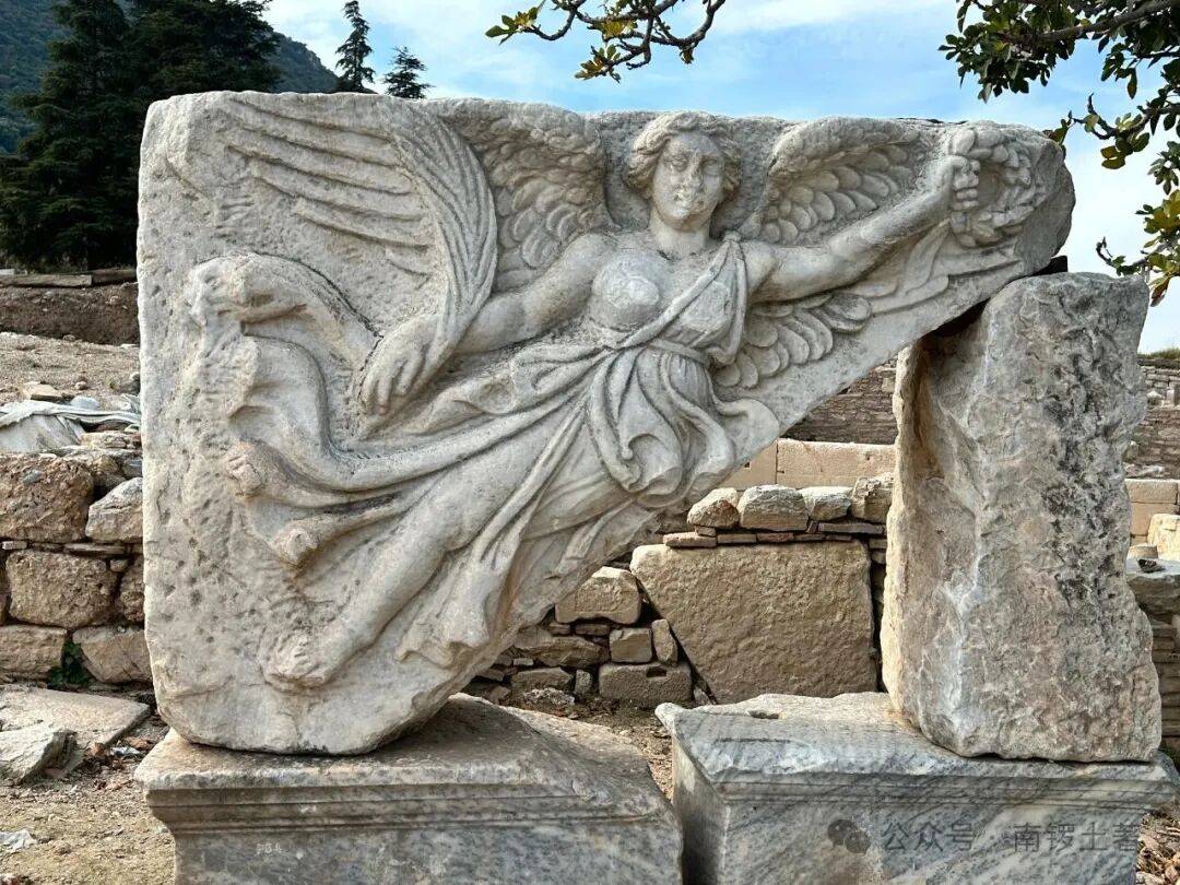 胜利女神Nike的浮雕,据说著名体育品牌Nike最初的商标设计灵感源于这个三角形